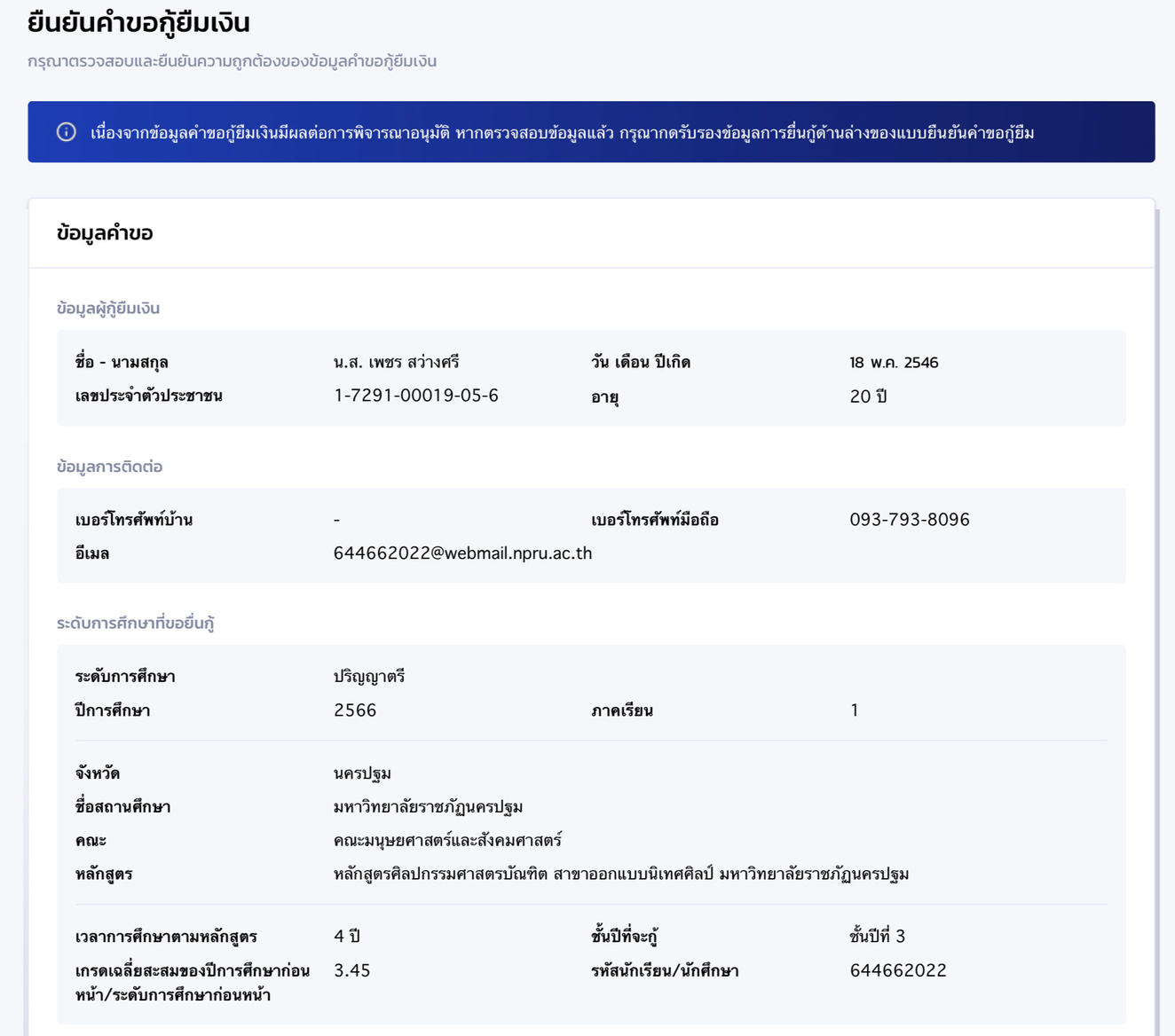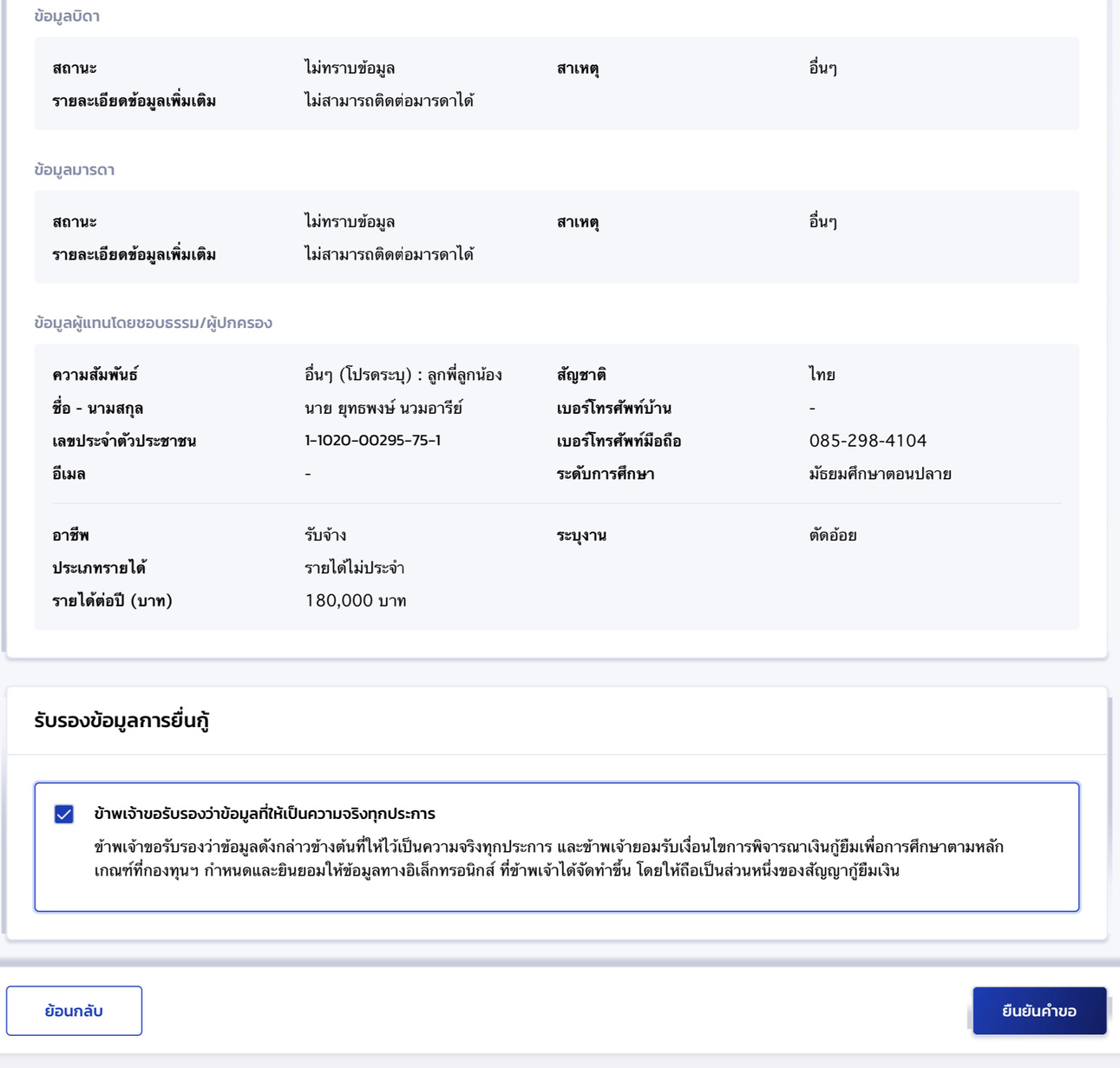 ขั้นตอนนี้ต้องตรวจสอบรายละเอียดให้ดี หากทำการยืนยันจะไม่สามารถย้อนกลับมาแก้ไขได้อีก ต้องยกเลิกและทำใหม่ทั้งหมด