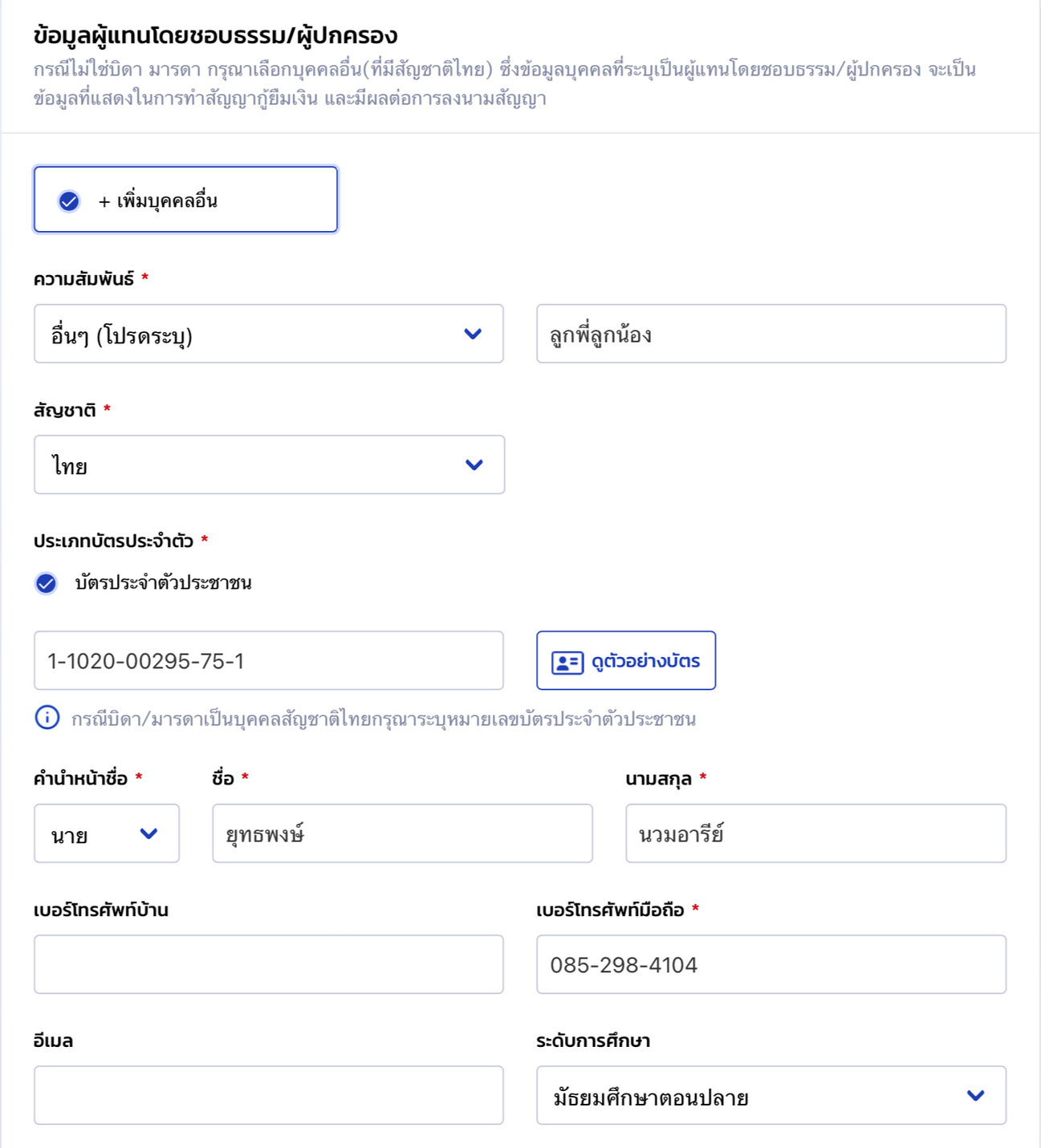 ตัวอย่างกรณีไม่มีบิดามารดาส่งเสีย ต้องมีผู้เกี่ยวข้อง