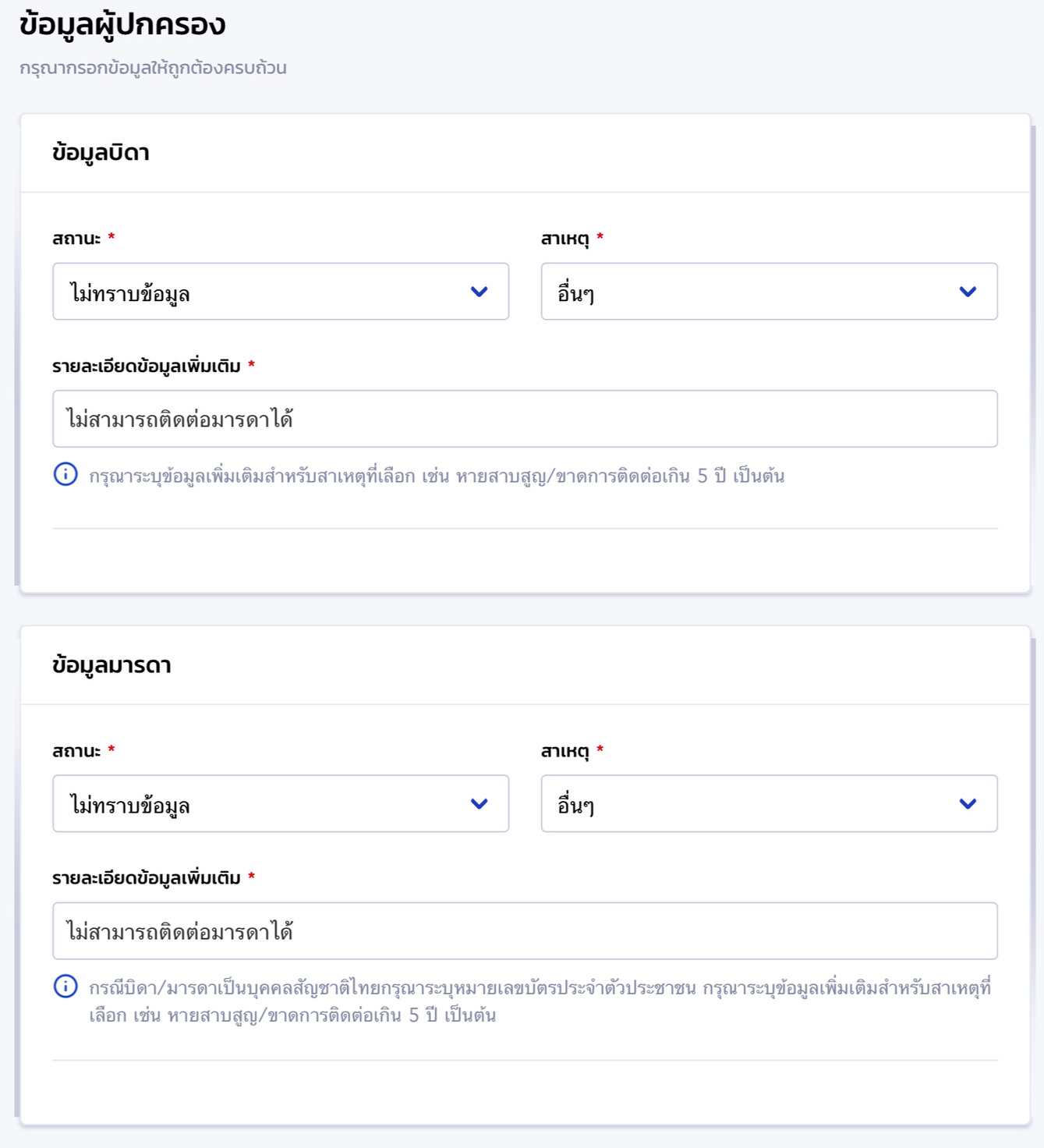 ตัวอย่างกรณีที่ไม่สามารถติดต่อได้ ไม่ได้ส่งเสียเลี้ยงดู